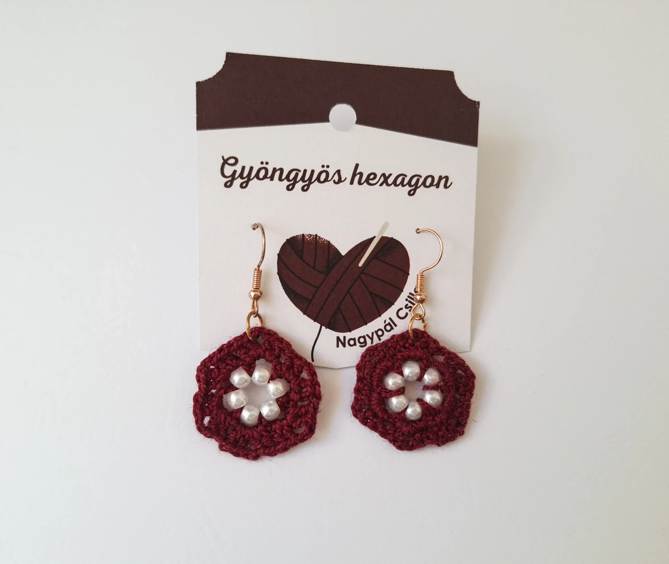 Horgolt fülbevaló – Gyöngyös hexagon