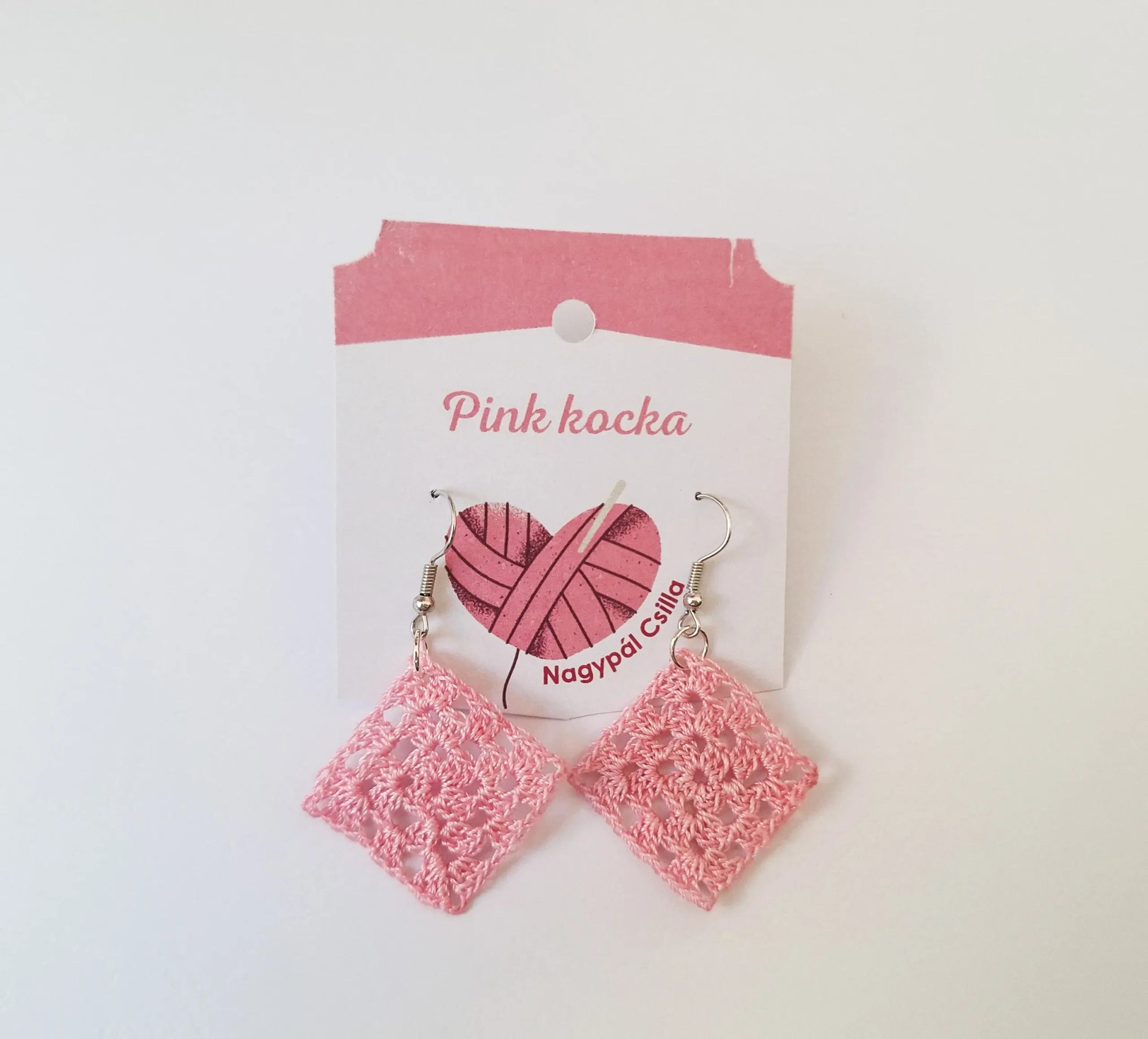 Horgolt fülbevaló – pink kocka